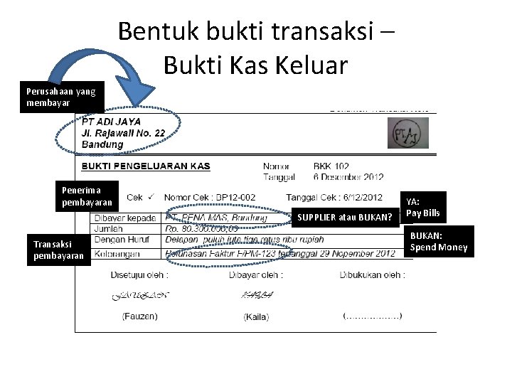 Penerimaan kas, bukti penjualan, dan bukti pembelian. Tertulis terkait penerimaan uang (kas) yang disertai oleh buktinya. Contoh bukti transaksi ekstern adalah kuitansi, faktur, nota debit, nota kredit,. Analisis bukti transaksi keuangan & kode akun buku besar smk negeri 2 semarang. Alur penerimaan kas • dimulai dari terjadinya transaksi yang menyebabkan .