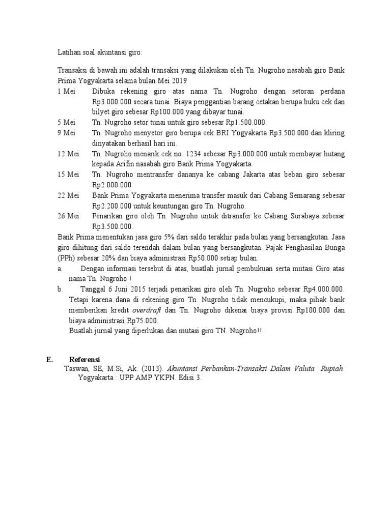 Contoh Soal Akuntansi Giro / Akuntansi Unit Giro 1232020 Akuntansi Perbankan Chapter 4 - Setiap transaksi harus dibuatkan keterangan tertulis seperti faktur atau nota penjualan atau kwitansi dan disebut dengan bukti transaksi.
