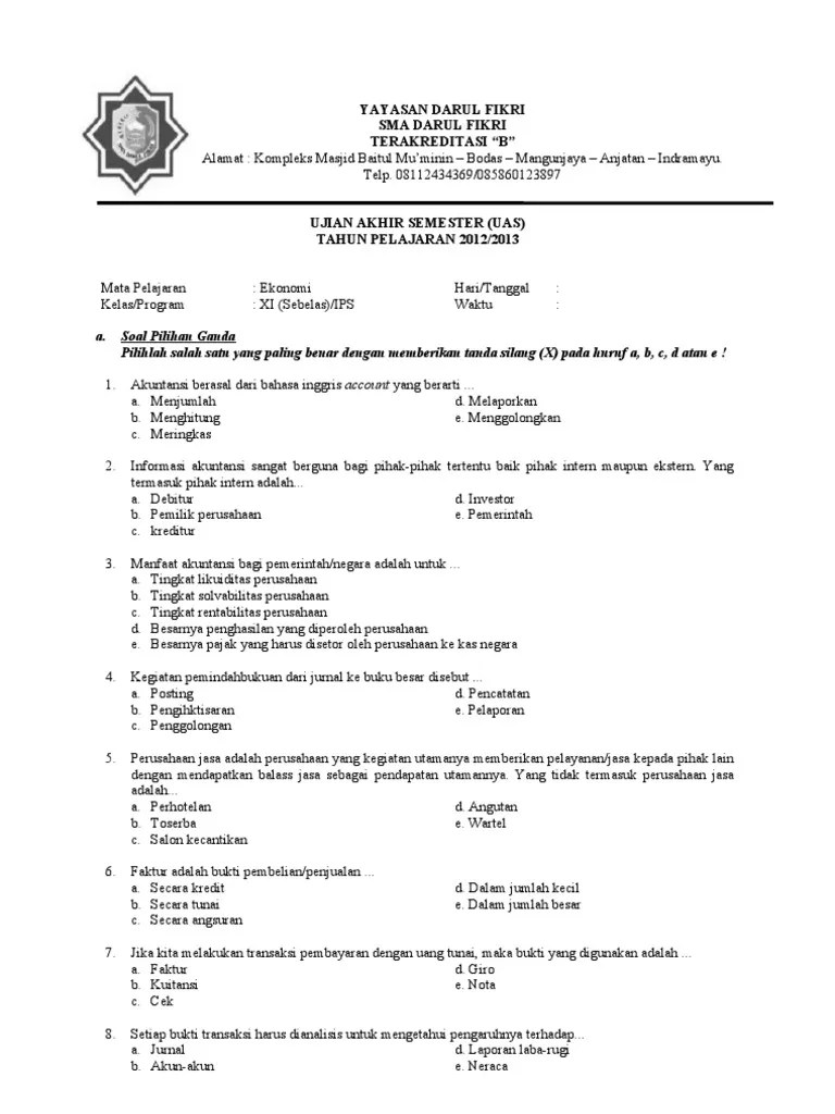 Sudah sampai manakah persiapanmu untuk menghadapinya? Baca selengkapnya disini untuk latihan. Dalam menghadapi ulangan tengah semester, maka tentunya guru . Simak soal dan kunci jawaban pts uts ekonomi kelas 11 sma semester 1. Soal uas ekonomi dan jawaban berikut ini, berisikan 60 soal (40 pg dan 20 essay)…… 1.